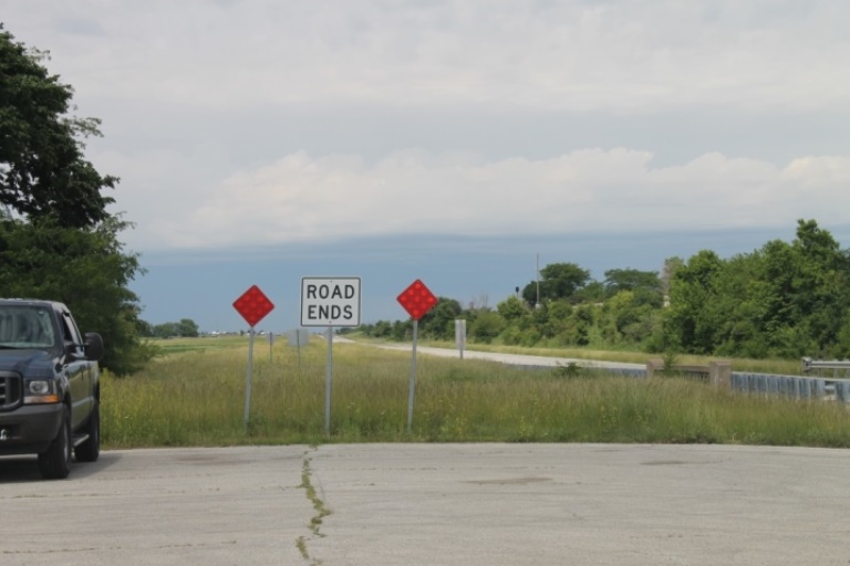 Itt az is látszik, ami a Springfield előtti szakasz egyik fő látványosága, hogy az eredeti utat meghagyták, és mellette építettek másikat. Az eredeti természetesen nem járható, csak látványosság. Mivel a kereszteződéseket nem engedik használni, ezért minden kereszteződésnél ilyen vége van az útnak: