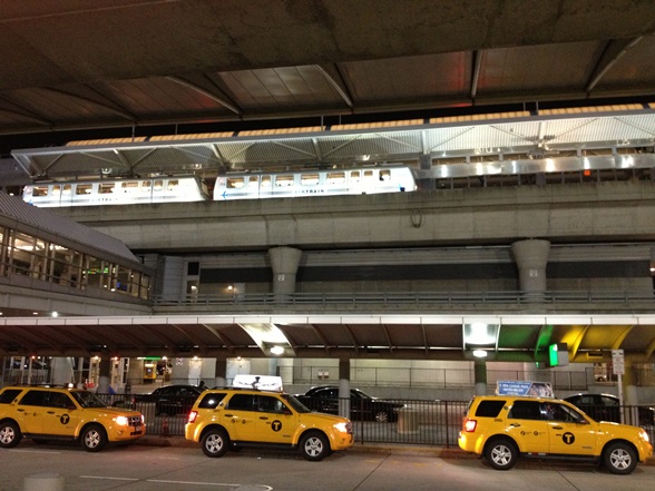 Mi a 7-es terminálra érkeztünk, ahol kiderítettük, hogy majd az 1-esről kell indulnunk. Nézzük hát meg az egyest. Ez az AirTrain egy nagyszerű dolog. Pillanatok alatt odahúzza az ember a bőröndjeit (vagy a bőröndjei őt), és minden könnyű, beszállás a kis vonatocskába, az pedig minden terminálnál megáll. Jól hangzik.