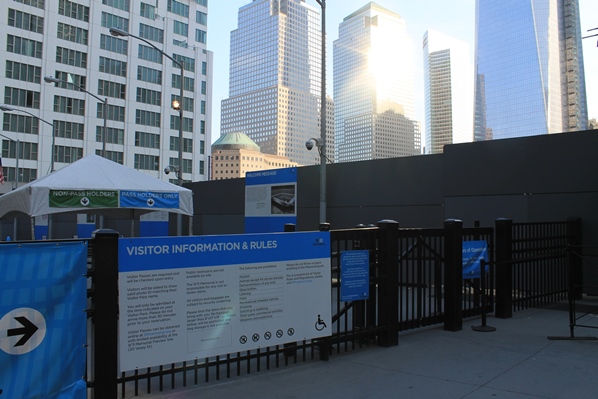 Közelebb mentünk a térhez, ahol anno az ikertornyok álltak. Az emlékhely nem volt nyitva, lehet hogy az építkezés miatt, lehet hogy csak túl korán volt, így csak körbejártuk a területet.