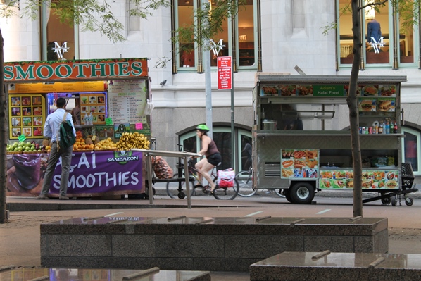 Mivel elég régen volt lehetőségünk valami élelemhez jutni, a United belföldi járatain pedig az utasok etetése nem szokás, így az éhenhalás szélén elindultunk valami élelmet keresni. Azt hittem, itt minden nagyon drága lesz vidékhez viszonyítva, de kellemesen csalódtam. Az utcák reggel megteltek hotdogárusokkal, akik pár dollárért nagyon finom hotdogokat és szenvicseket kínáltak (tisztára mint mikor a helyszínelők sorozatban kimennek kajálni :)), úgyhogy mi is beálltunk a sorba, és vettünk kaját.
