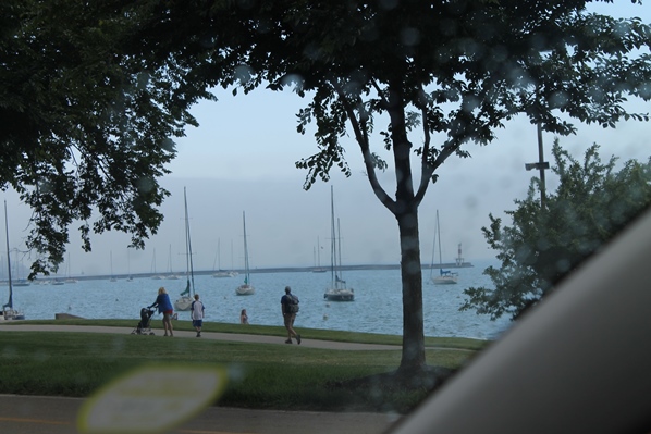 Az iPadra sikerült egy offline térképet letölteni (még hónapokkal ezelőtt) Chicagóról, így navigáltunk. Persze nem mindig pont oda tesz mint ahol vagyunk, néha a kép szerint oldalazunk vagy a vízben megyünk, de mégiscsak valami. A kedvencem benne, hogy 2 dolgot jelöl kék színnel: a vizet és az autópályát. Ami tulajdonképpen jó, mert egyikbe sem szeretnénk belemenni. Vagyis a kék szín mindenképpen kerülendő. Egyszer azért beletévedtünk, szerencsére nem a vízbe. A másik probléma, hogy magasság nem látszik rajta, így fordulhatott elő, hogy a híd helyett a híd alá mentünk. Az egyirányú utcák sem látszanak rajta egyirányúnak, ezért kellett 15 km-t oda-vissza megtennünk, mert csak akkor lehetett megfordulni. :)