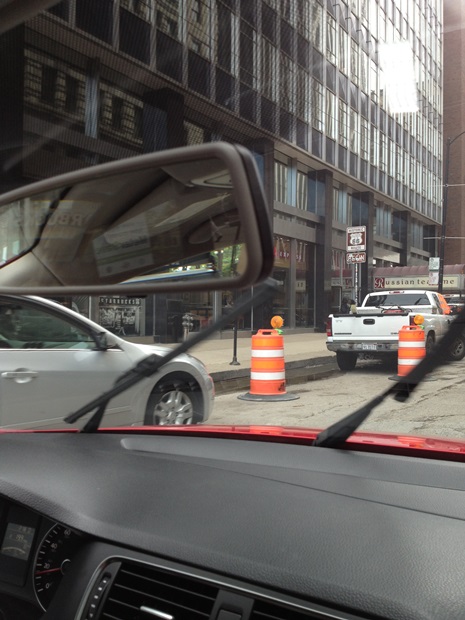 De menjünk picit vissza, mert előtte volt még egy történet ami gyarapította abszolút gyarapításra szoruló Chicagoi helyismeretünket. Ez pedig a BEGIN tábla lefényképezése. Na most, ugye vannak GPS koordinátáink. GPS készülékünk természetesen nincs (azt kispóroltuk a kocsiból), van egy iPadunk, amiben nincs internet, és egy iPhone, amiben szintén nincs internet.