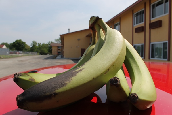 ...azt láttuk, hogy egyből mindenki pakolja a kosarába a zöld banánokat. Hű. Ez valami helyi különlegesség, és csak zöldnek néz ki, belül meg valami nagy durranás?! Vettünk.