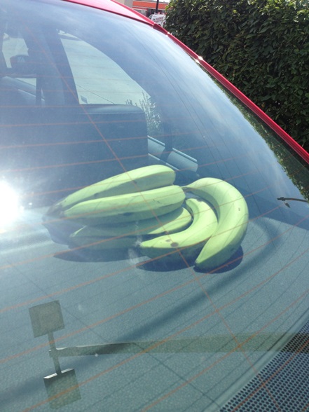 Az a vicc jutott eszembe a szőke nőről, aki bemegy a parkolóba, csak azért mert az előtte levő is bement. Na igen, ez mi voltunk. Történt ugyanis, hogy a szupermarketben láttunk fura gyümölcsöket, amiről fogalmunk se volt hogy micsoda, és mellettük egy hatalmas hegy banán, egészen sötétzöld banán méghozzá. Nem egy kicsit zöldes, hanem olyan rendesen, mint egy görögdinnye. Ha otthon vagyunk, fujjogva továbbállunk. De...