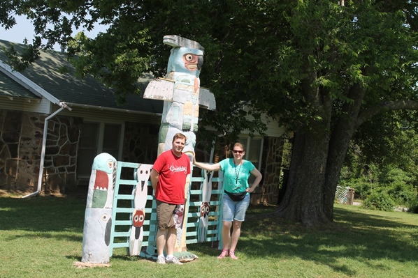 Mi bizony kerestük - és meg is találtuk. Szerényen megbújt a fák között, amennyire egy világ legnagyobb totemoszlopa meg tud bújni. :) A teteje leleplezte ahogy kilógott a fák közül.