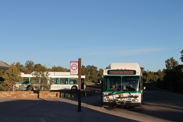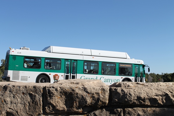 Azért mi letettük az autót (a biztosításunk külön záradékban rendelkezett a Grand Canyonról hogy ott nem érvényes), és megkerestük hogy merre induljunk. Az egész nemzeti parkban úgynevezett Free Shuttle Bus jár. Ezeket kb úgy lehet elképzelni, mint a BKV, azzal a különbséggel, hogy a buszok szépek, modernek, csendesek (környezetbarát buszok, nincs füstjük), és 15 percenként járnak (mi úgy vettük észre hogy gyakrabban, de ez a hivatalos). Az egész parkban mászkálnak, és ingyenes a használatuk, annyit és oda utazgat velük az ember, amennyit akar, minden körtefánál megállnak. A sofőr türelmes, az ajtót se csukják a lábunkra, és biciklit is fel lehet vinni. A buszvezetők nagyon barátságosak, és egyfolytában beszélnek a mikrofonba is meg mellé is, folyamatosan szórják az információt, hogy itt most miért érdemes leszállni, és mi fog következni, meg sok egyebet is ami már az én tudásomhoz sok volt.
